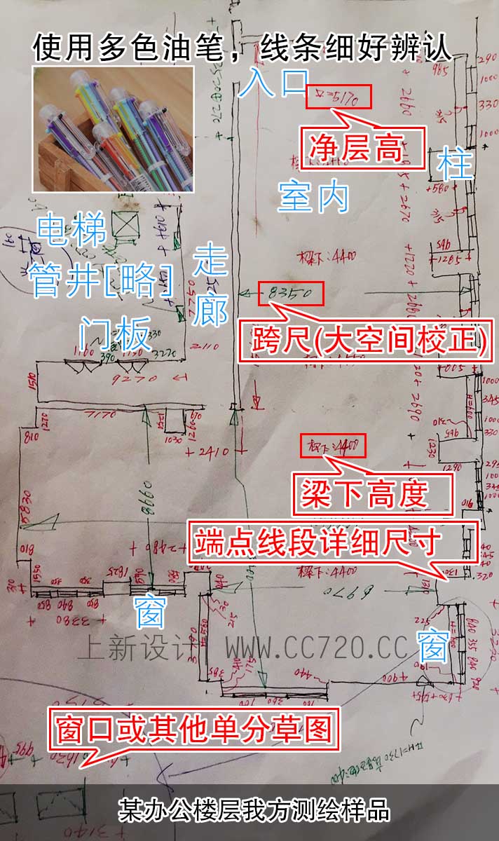 3.绘制相对熟练:建议使用四色芯油笔(油笔线条较细,多色可以区分不同内容方便解读).
