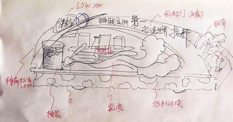 建立可确定的沟通基础,减少不必要的耗时,绘制构思沟通草图2份其中一份获得肯定意向。